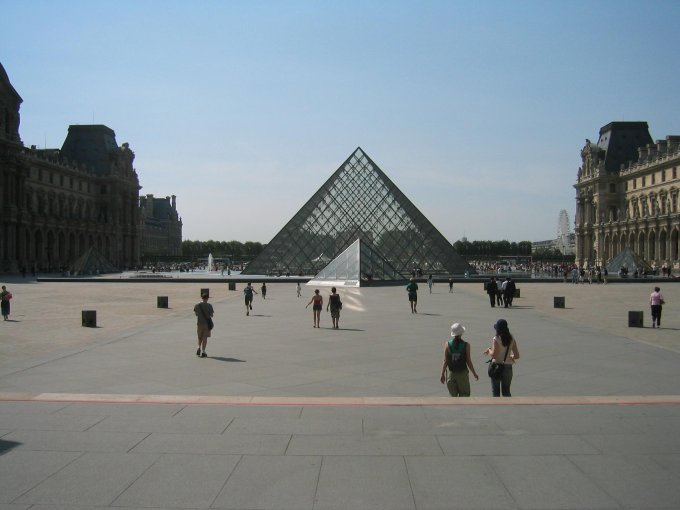 du Louvre, la pyramide barre la perspective vers l?Arc.( Photos