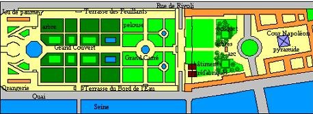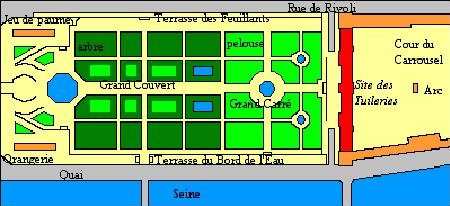 Tuileries représenté ici en rouge. Il en est de même